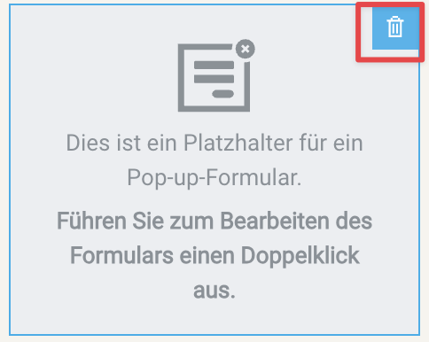 - Um das Formular zu löschen, klicken Sie auf den Platzhalter und dann auf das Papierkorb-Symbol.