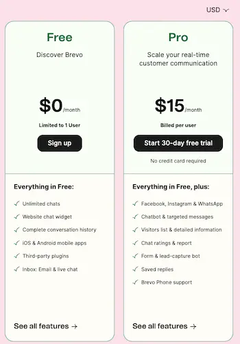 | Brevo | Unlimited contacts, 300 sends per day | $84/month with unlimited contacts and 40,000 sends | $399/month with unlimited contacts and 500,000 sends |