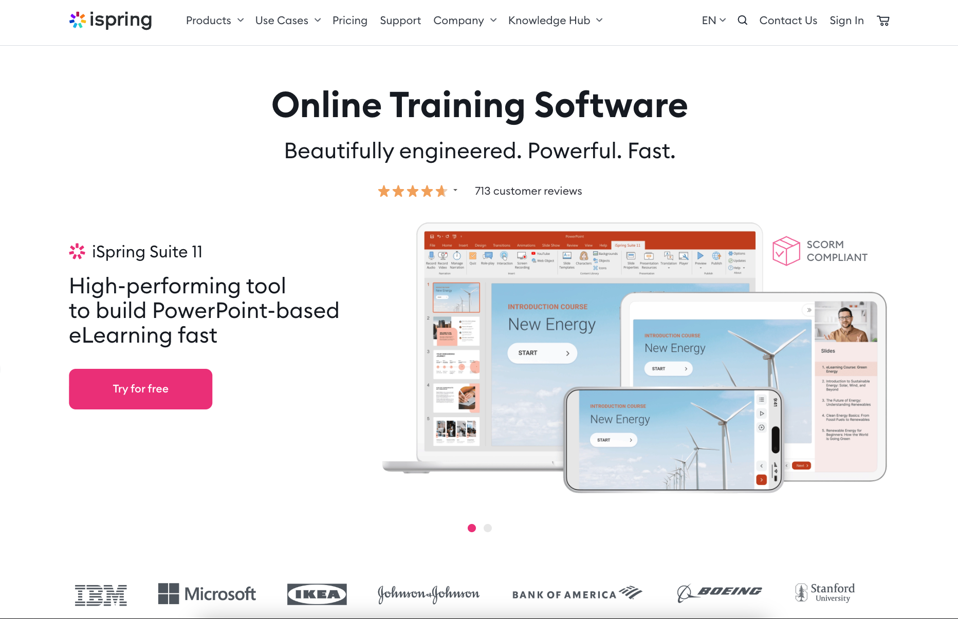 | iSpring Solutions | Browser authoring with SCORM/xAPI export and AI assistant | $720/year per user | Teams that need fast SCORM/xAPI packages for any LMS |