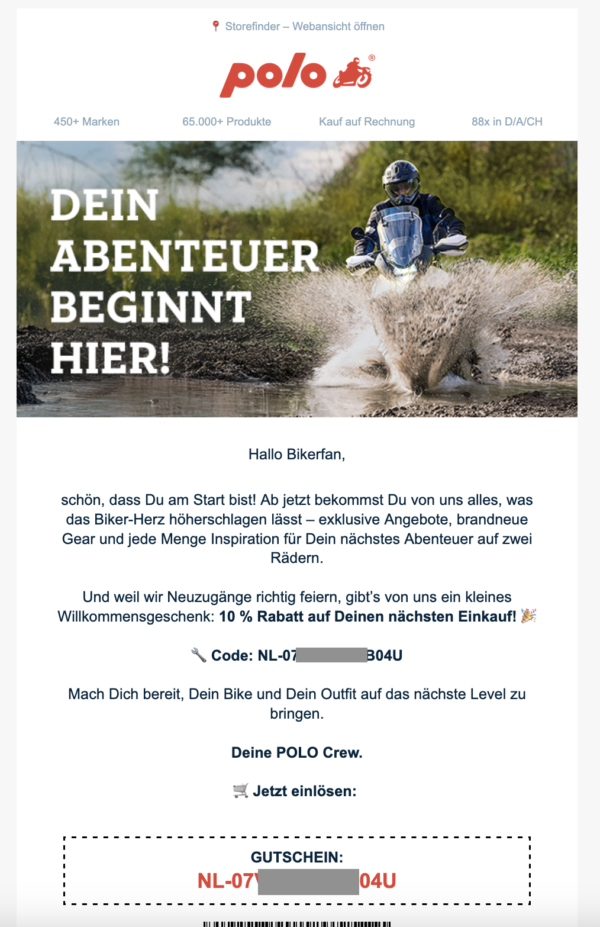 Wie du siehst, ist auch ein Rabattcode enthalten. Es ist eine sehr effektive Methode, um die Konversionsrate zu erhöhen.