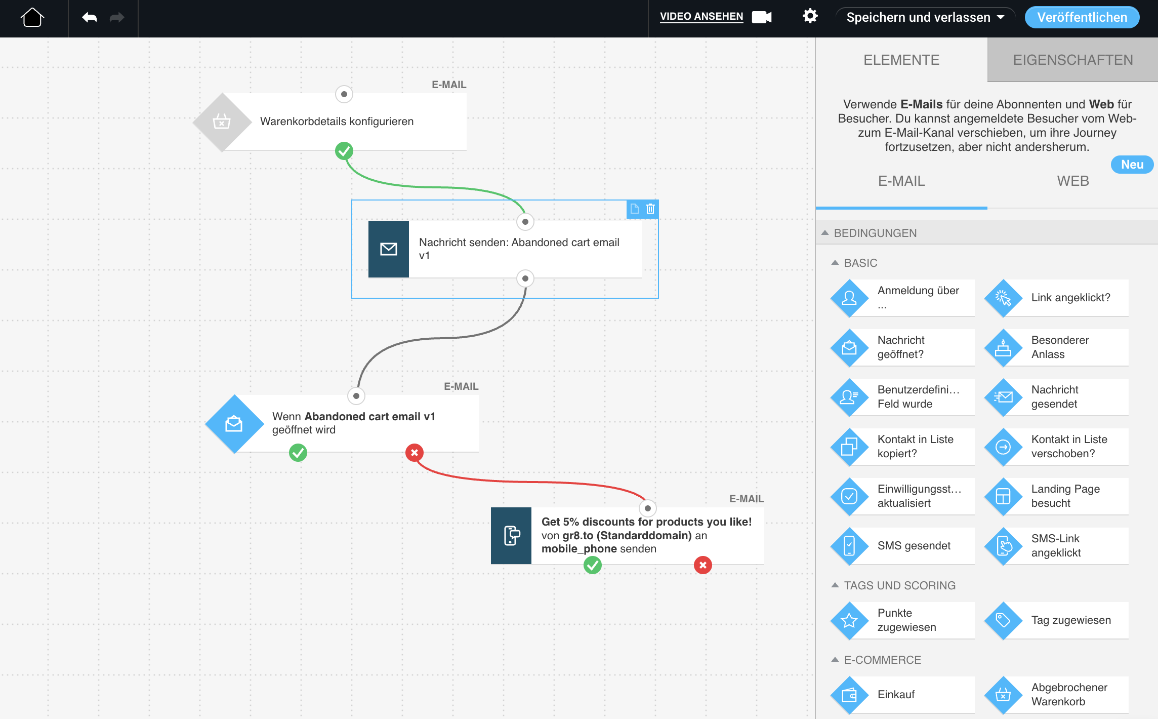 - visueller Editor zur Planung von E-Mail- und SMS-Kampagnen
