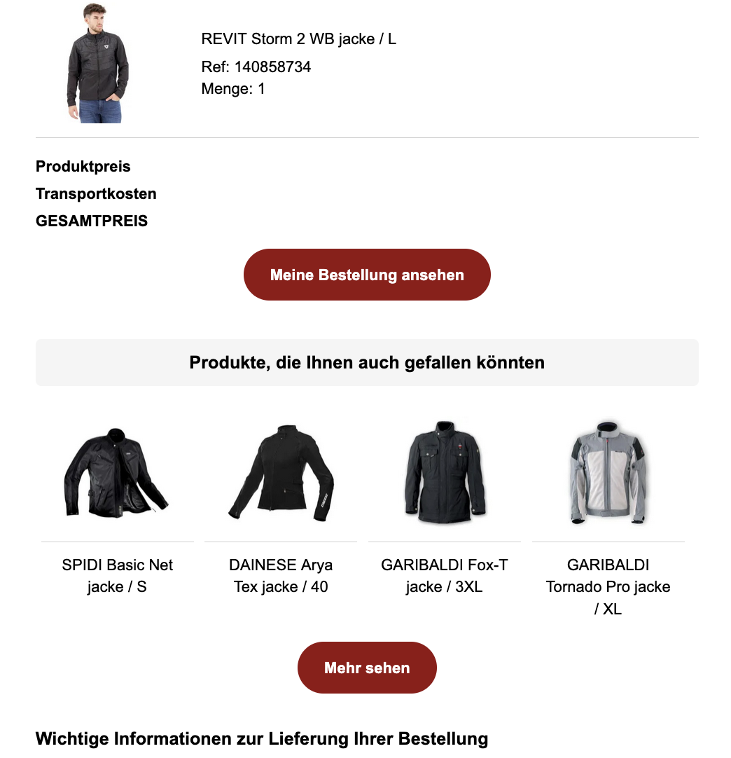 Hier ist ein klassisches Beispiel für eine E-Mail mit Produktempfehlungen: