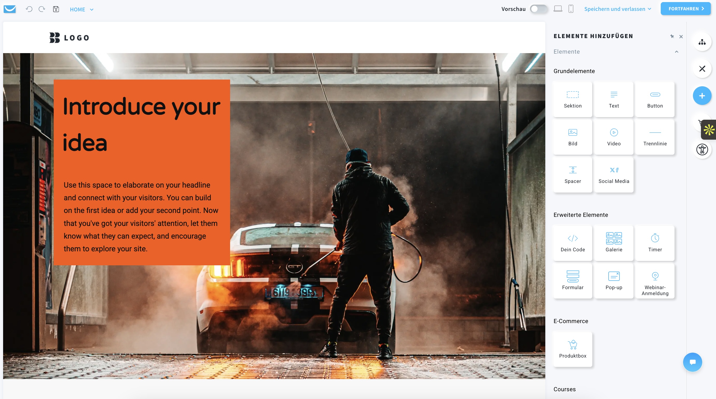 Unser Drag-and-Drop-Editor macht es einfach, deine Landing Page zu gestalten, ohne dass du Programmierkenntnisse benötigst. Wähle aus einer Vielzahl von vorgefertigten Inhaltsblöcken, wie Textabschnitten, Bildplatzhaltern, Videoeinbettungen, Formularbereichen und Call-to-Action-Buttons, und arrangiere sie so, dass dein Angebot optimal zur Geltung kommt.