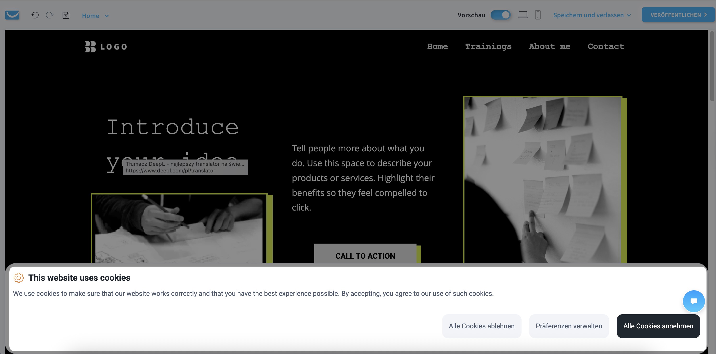 - Nachdem Sie die Website veröffentlicht haben, sehen die Besucher die Cookie-Benachrichtigung auf Ihrer Website.