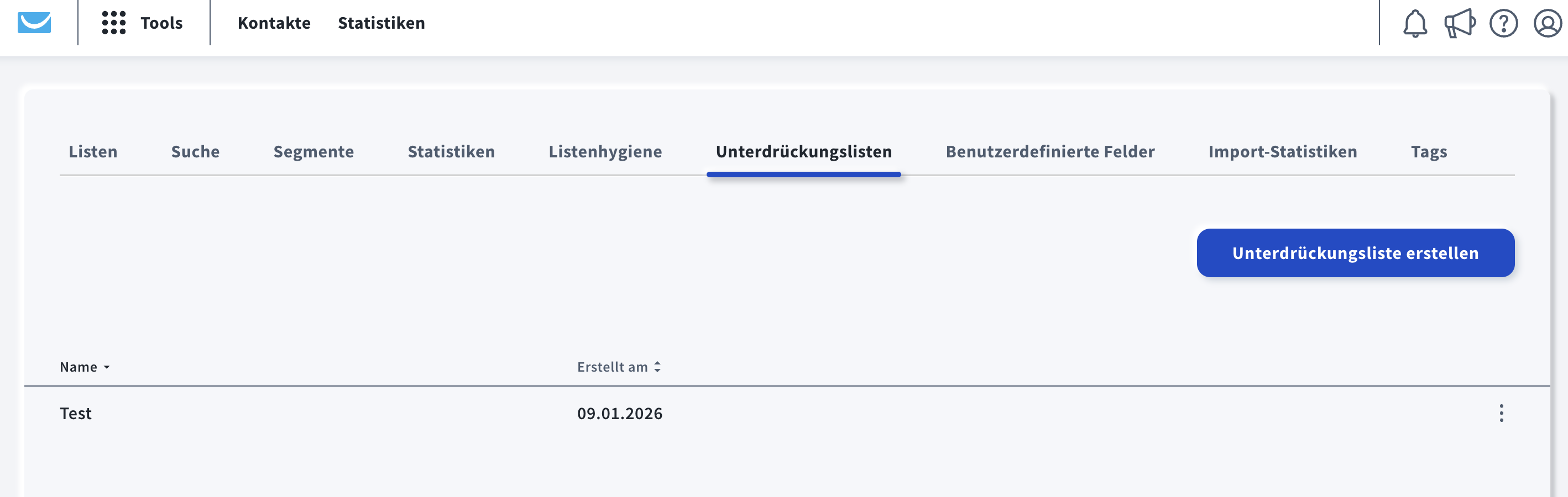 Sobald Sie eine Unterdrückungsliste erfolgreich erstellt haben, kehren Sie automatisch zur