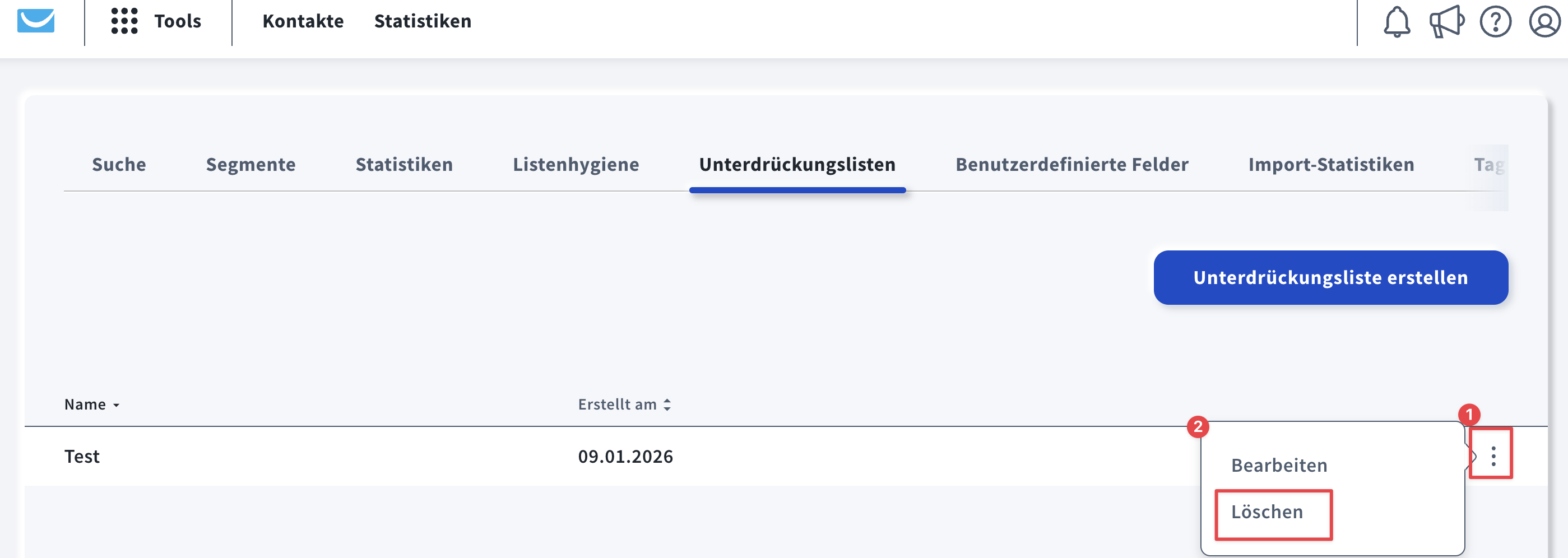 - Neue Unterdrückungslisten erstellen