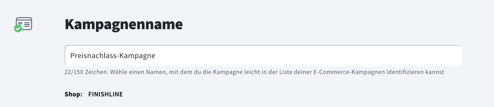 - Geben Sie im Abschnitt Kampagnenname einen Namen ein, der nur für Sie sichtbar ist.