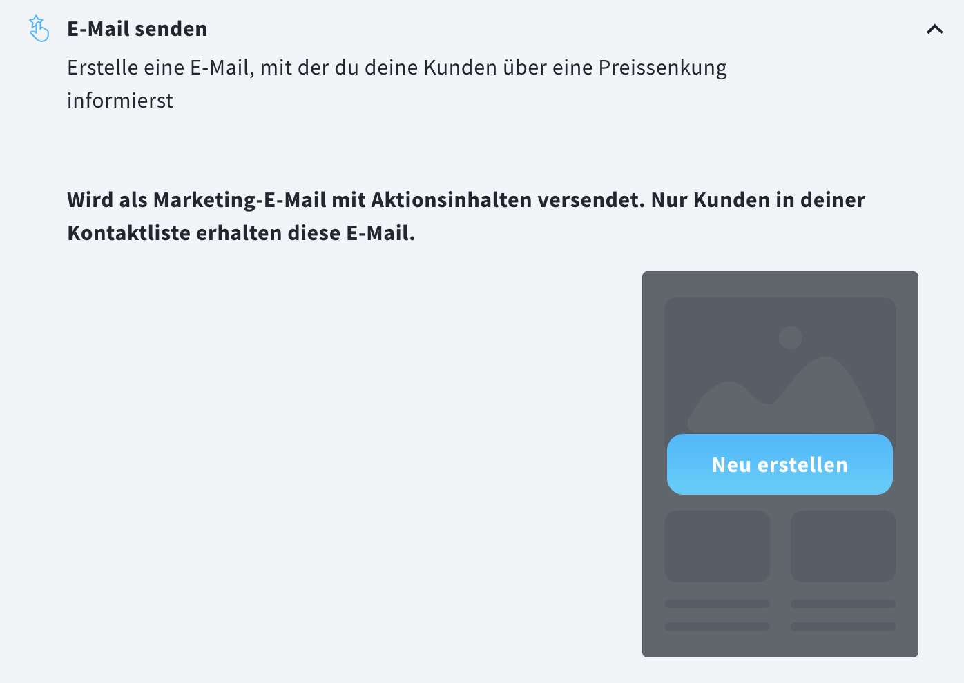 - Klicken Sie auf die Kachel E-Mail senden, um deren Einstellungen zu erweitern.