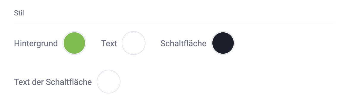 - Im Abschnitt Style wählen Sie die Farben für Hintergrund, Text, Schaltfläche, und Text der Schaltfläche aus.