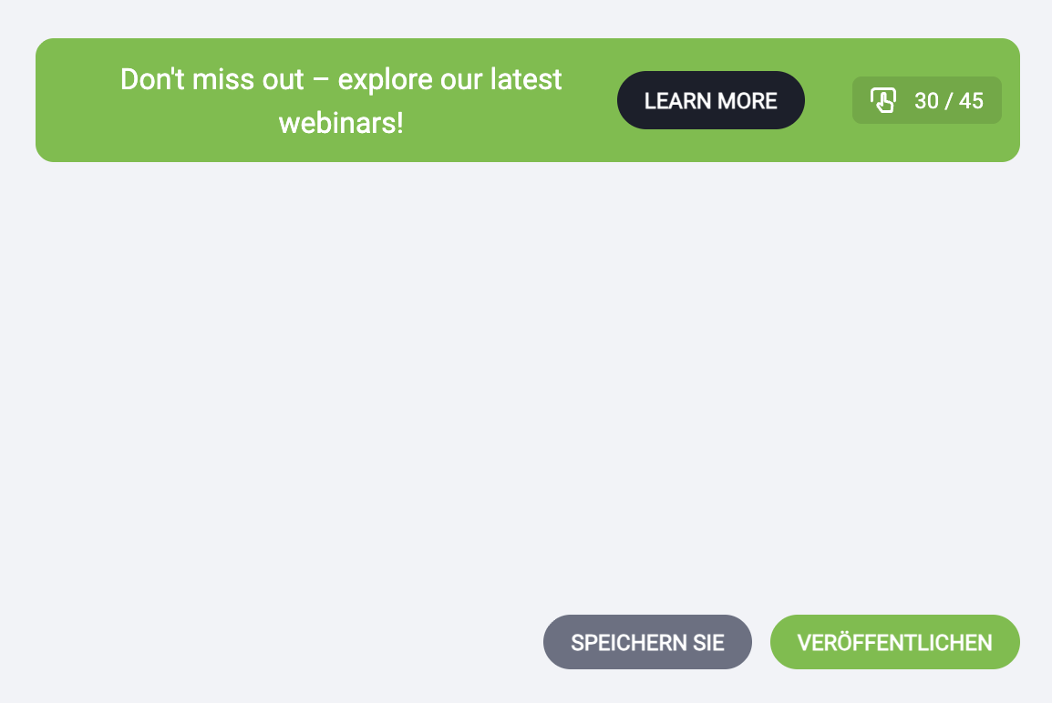 - Wenn alles bereit ist, klicken Sie auf SPEICHERN SIE, um den CTA als Vorlage zu speichern, und/oder auf VERÖFFENTLICHEN, um ihn sofort anzuzeigen.