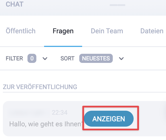 Sie können selbst entscheiden, ob diese im Tab Fragen angezeigt werden sollen. Scrollen Sie einfach zur entsprechenden Frage und klicken Sie auf Anzeigen.