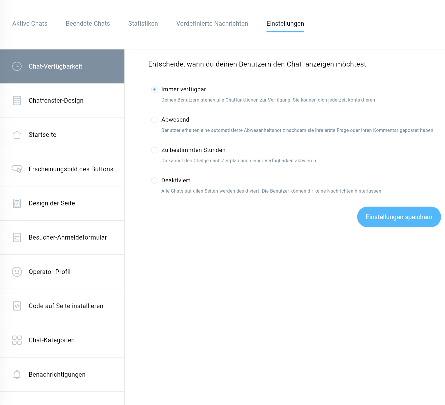 Nachdem Sie Ihre Chat-Verfügbarkeit angepasst haben, klicken Sie auf Einstellungen speichern.