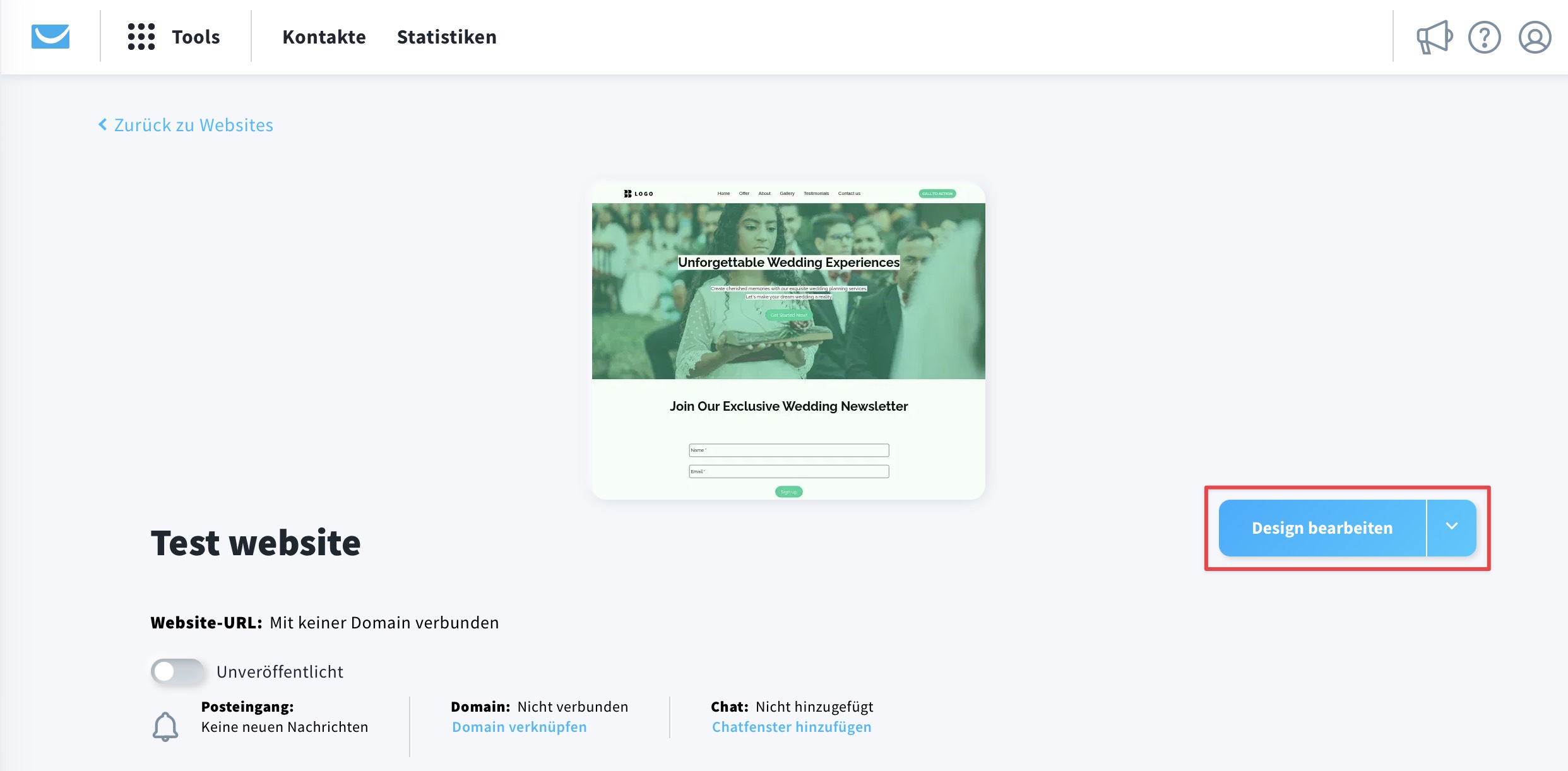 - Wählen Sie Ihre Website aus und klicken Sie auf Design bearbeiten.