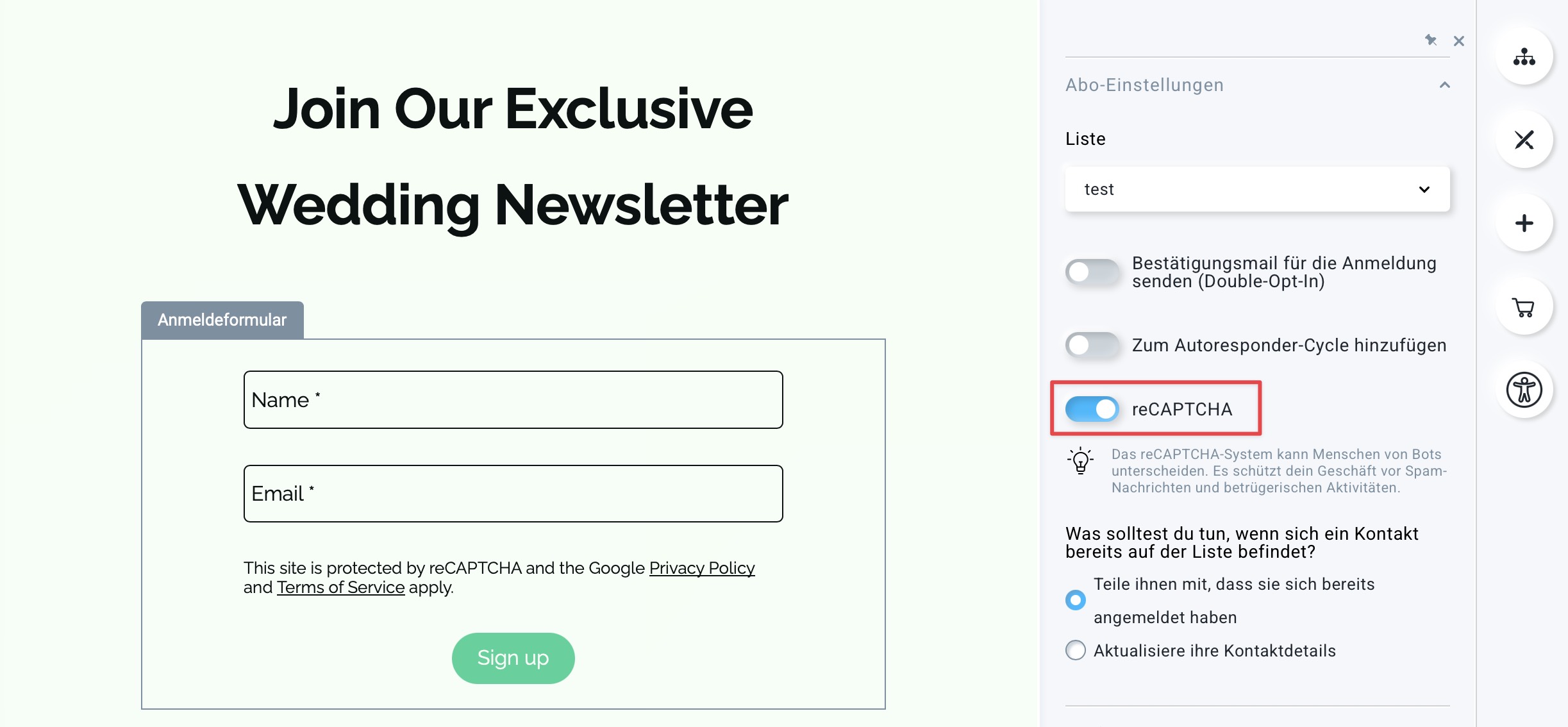 Wie kann ich meinem Registrierungsformular auf einer Landing Page oder Website ein reCaptcha hinzufügen