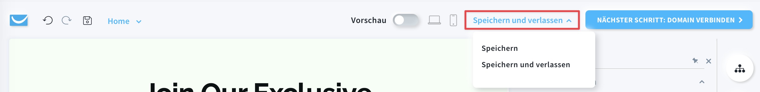 - Gehen Sie zu Tools > Website builder.