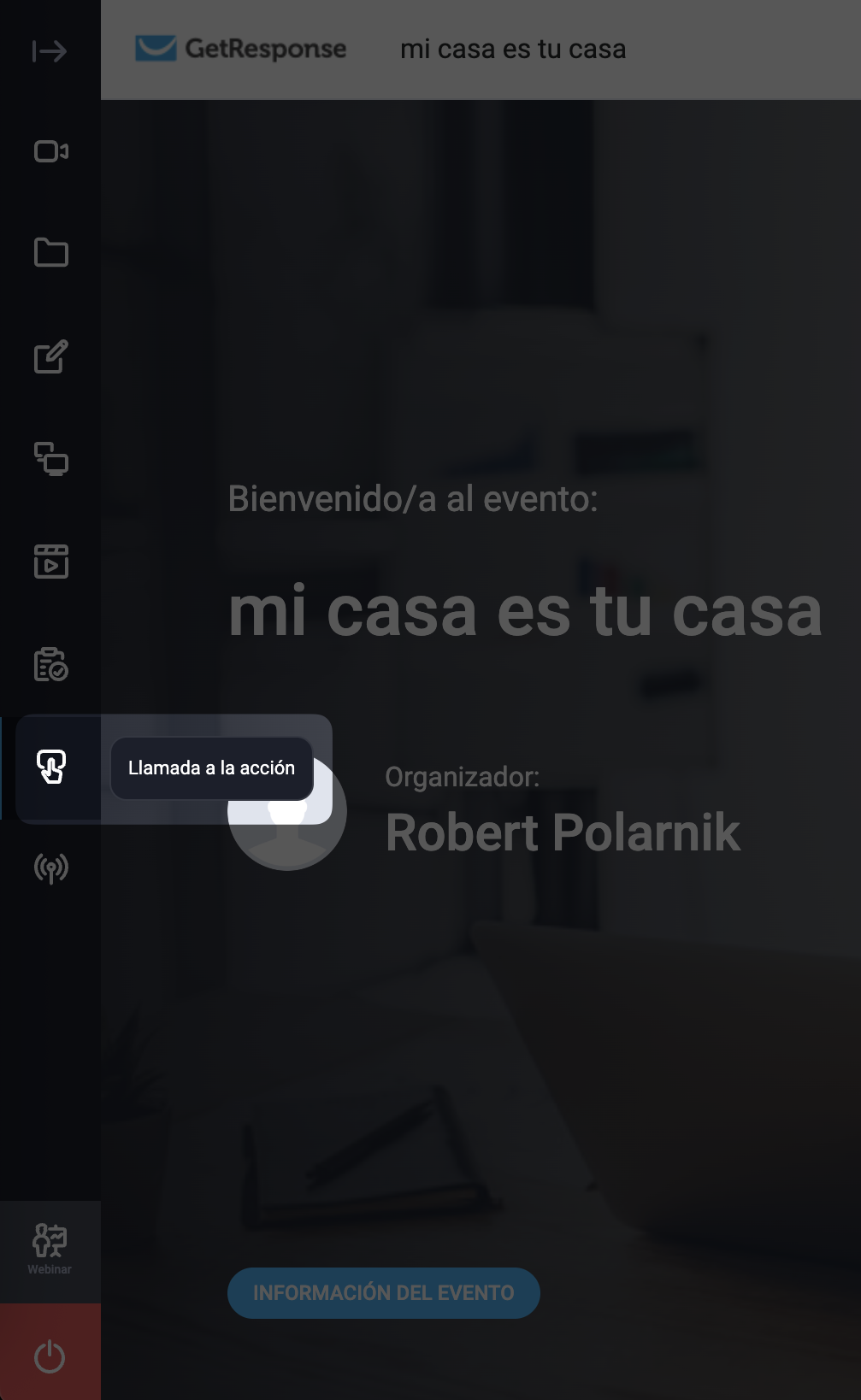 - En la sala de tu webinar, haz clic en Llamada a la acción desde el menú del lado izquierdo.
