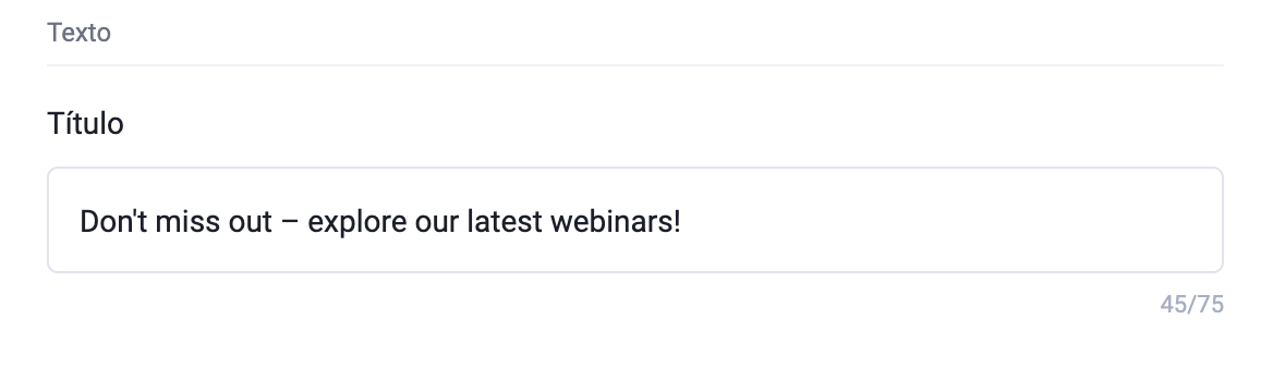 - introduce el Título (hasta 75 caracteres), que se mostrará encima o junto al botón CTA