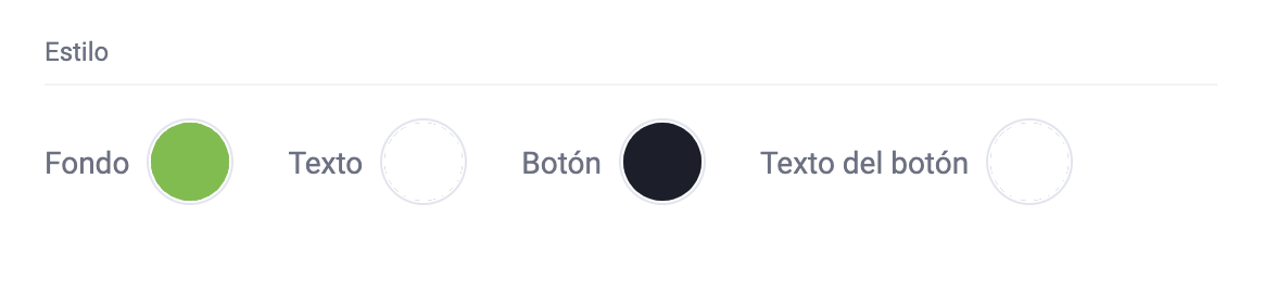 - En la sección Estilo, selecciona los colores de Fondo, Texto, Botón, Texto del botón.