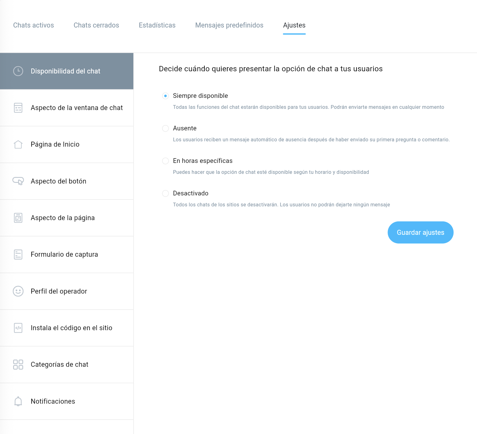 Una vez que personalice la disponibilidad de su chat, haga clic en Guardar ajustes.