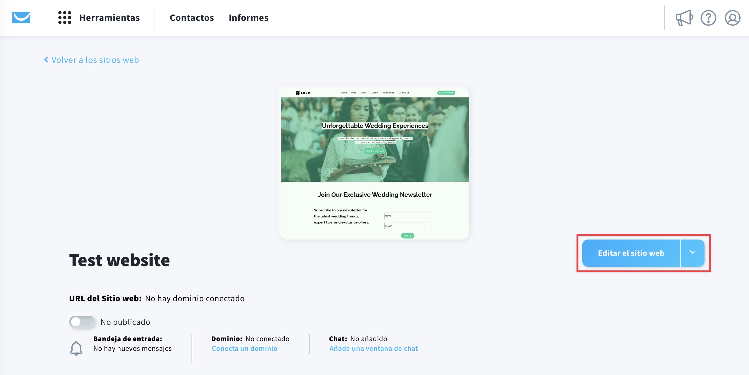 - Seleccione su sitio web y haga clic en Editar el sitio web.