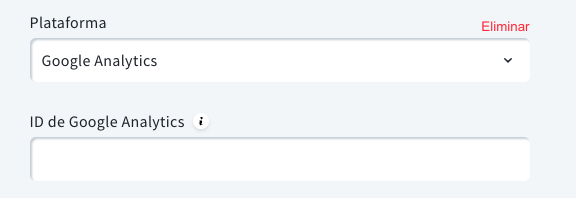 - Selecciona Google Analytics en la lista desplegable y pega tu ID de Google Analytics.