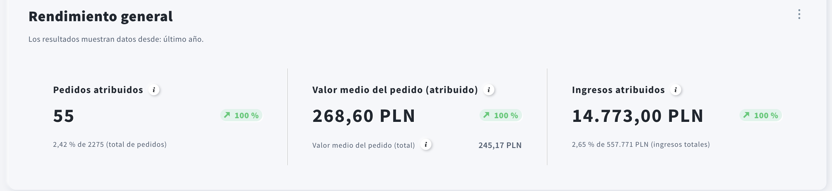 - Ingresos atribuidos los ingresos provenientes de los pedidos atribuidos.