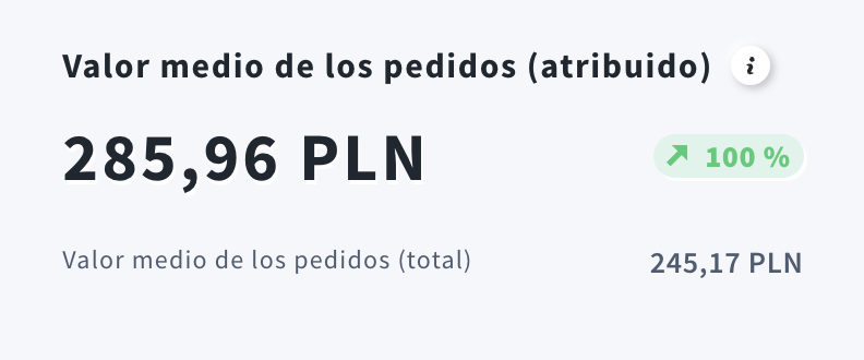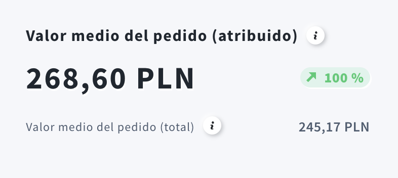 El valor medio del pedido (atribuidos) es el ingreso atribuido dividido por el número de pedidos atribuidos.