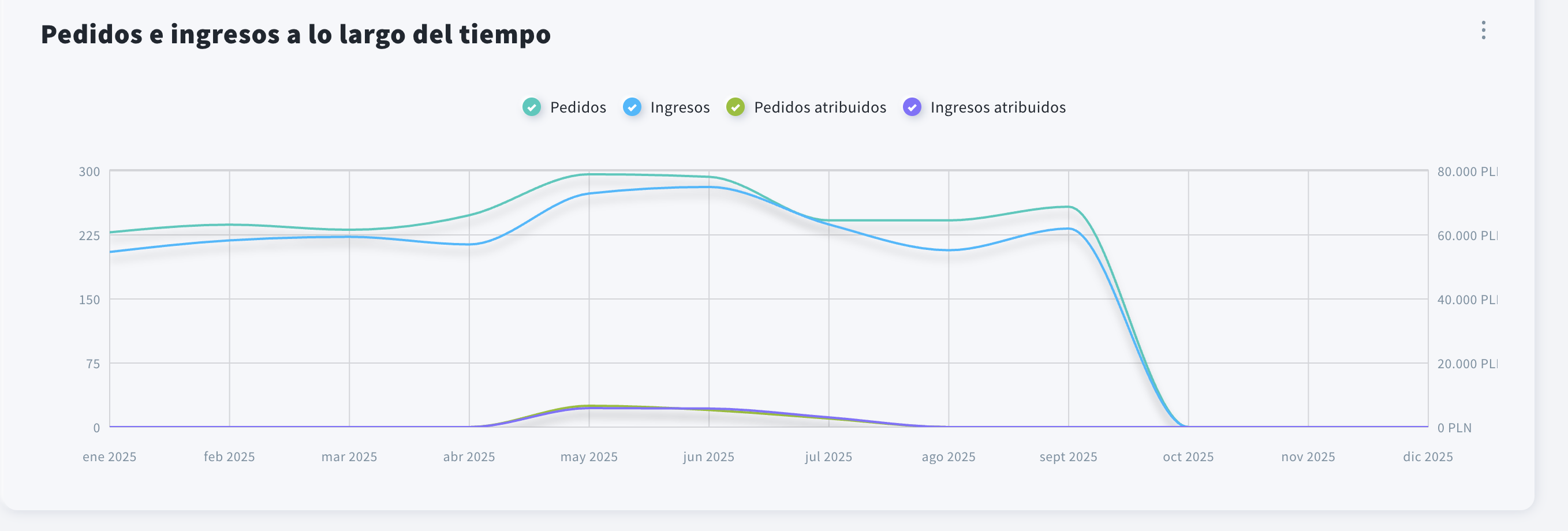 Los pedidos atribuidos son el número de pedidos pagados provenientes de las tiendas seleccionadas dentro del período de tiempo elegido.
