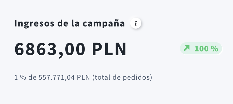 Los ingresos de la campaña son el valor total de las ventas generadas por tu campaña de ecommerce