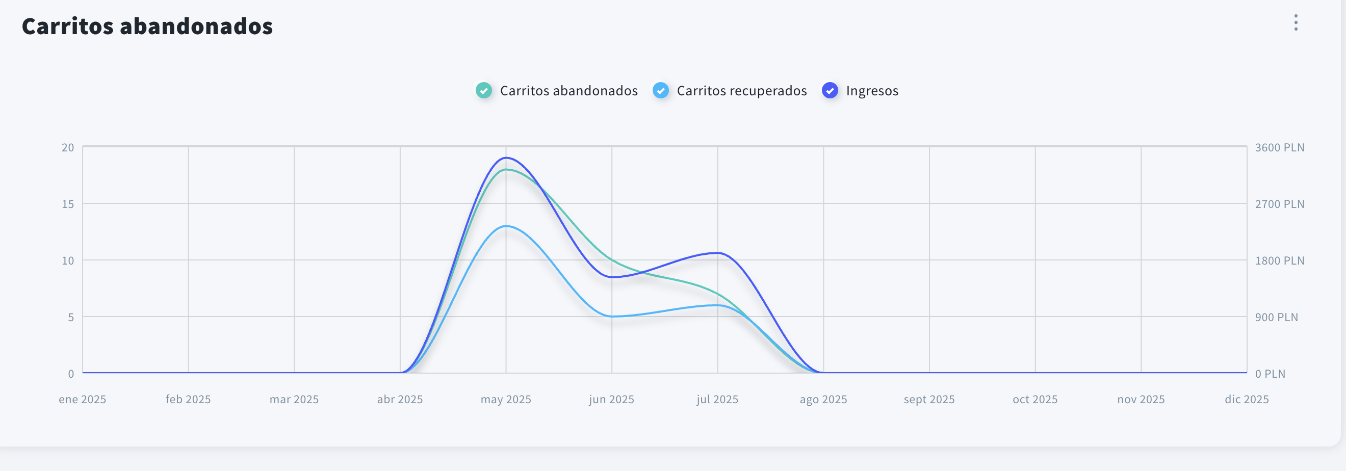 Gráfico diseñado para seguir visualmente el rendimiento de recuperación de carritos abandonados a lo largo del tiempo.