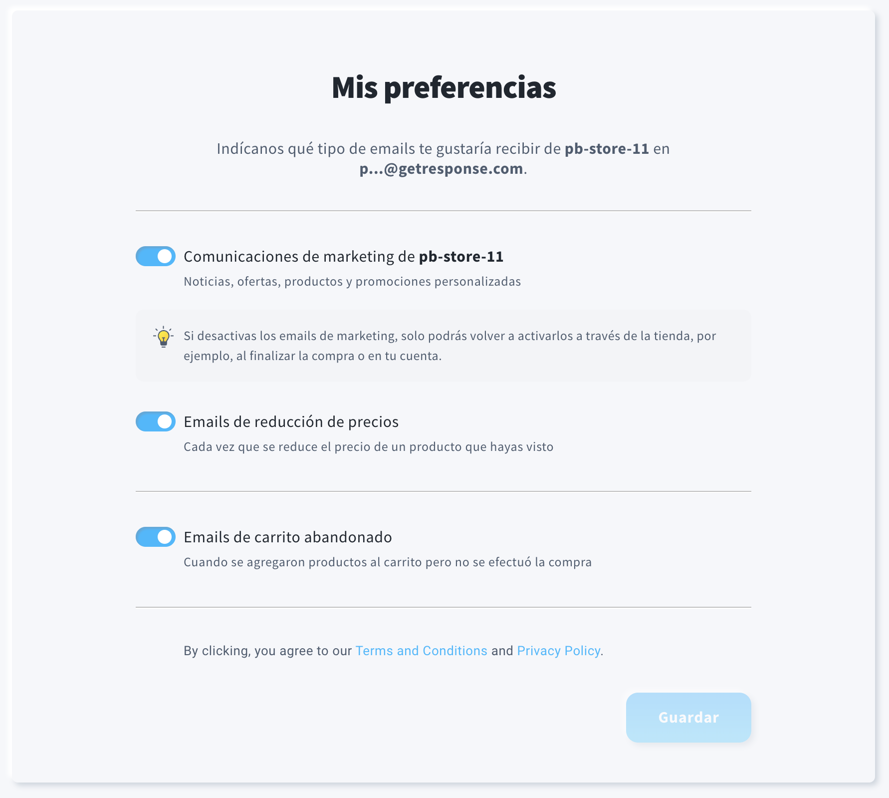 Estas opciones facilitan que los suscriptores personalicen su experiencia con cualquier marca que utilice GetResponse.