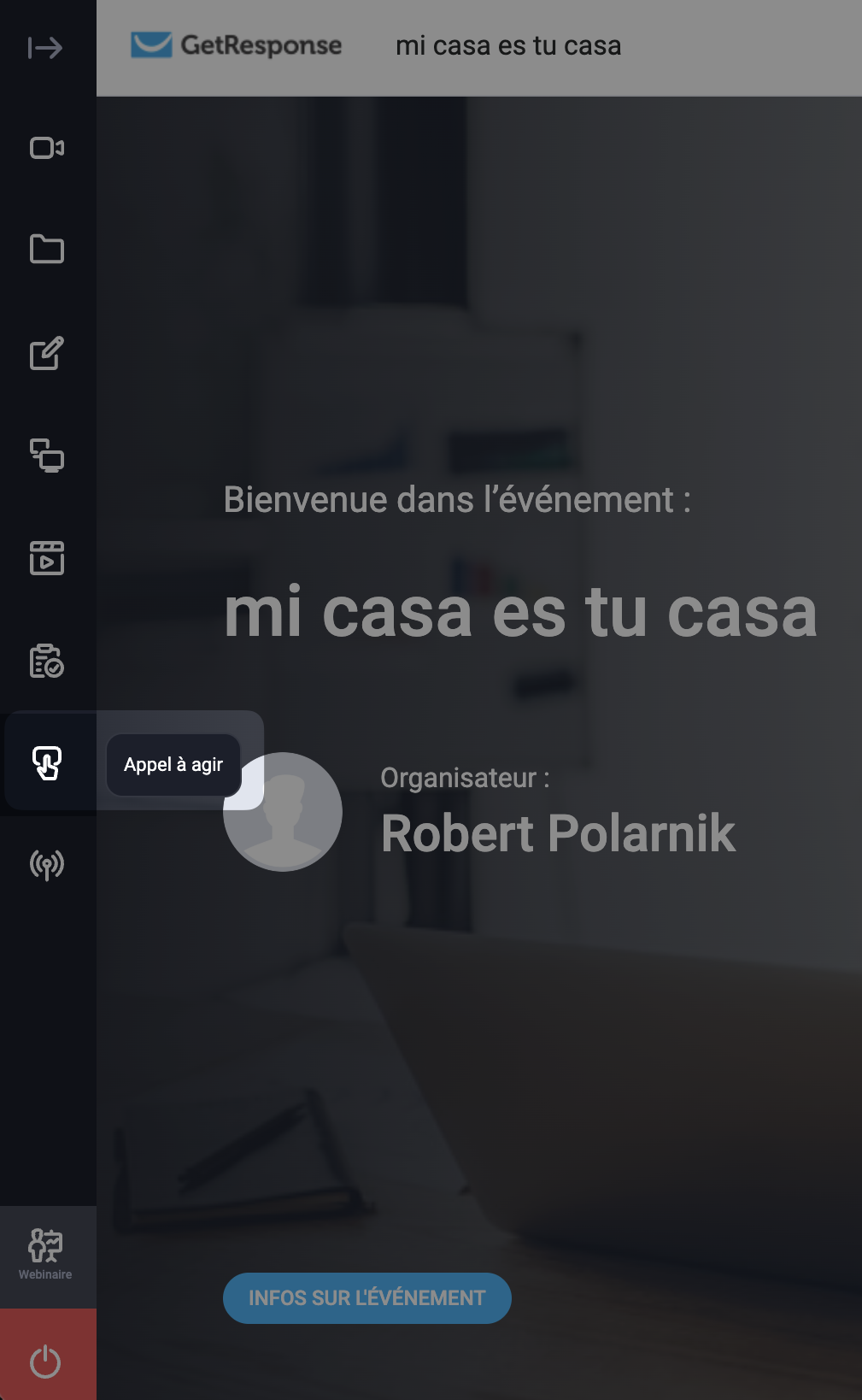 - Dans votre salle de webinaire, cliquez sur Appel à agir dans le menu de gauche.