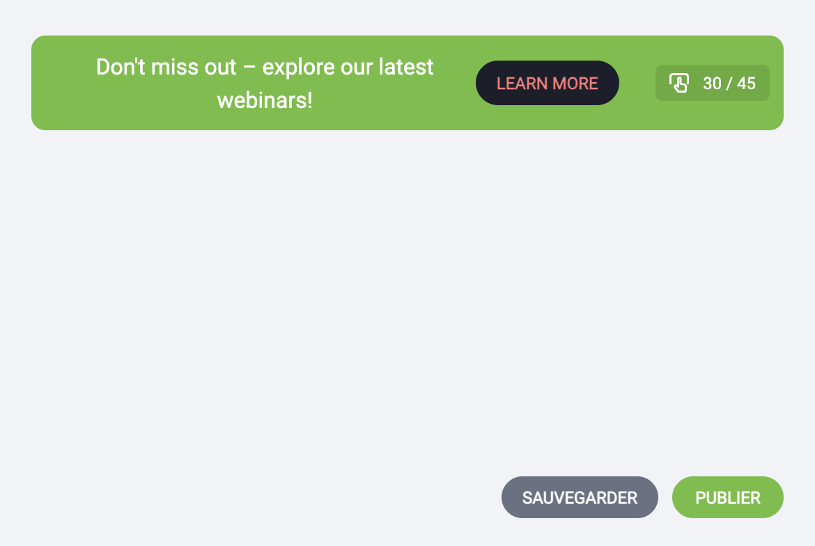 - Lorsque tout est prêt, cliquez sur SAUVEGARDER pour l’enregistrer comme modèle et/ou sur PUBLIER pour l’afficher immédiatement.