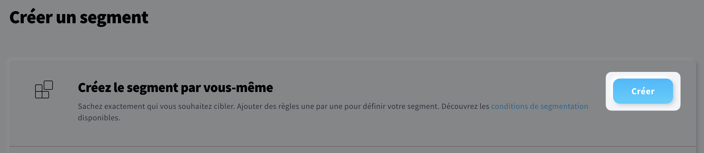- Cliquez sur Créer à côté de Créez le segment par vous-même.