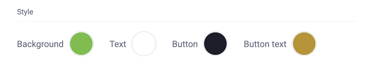 - In Style section, select the colors of Background, Text, Button, and Button text.