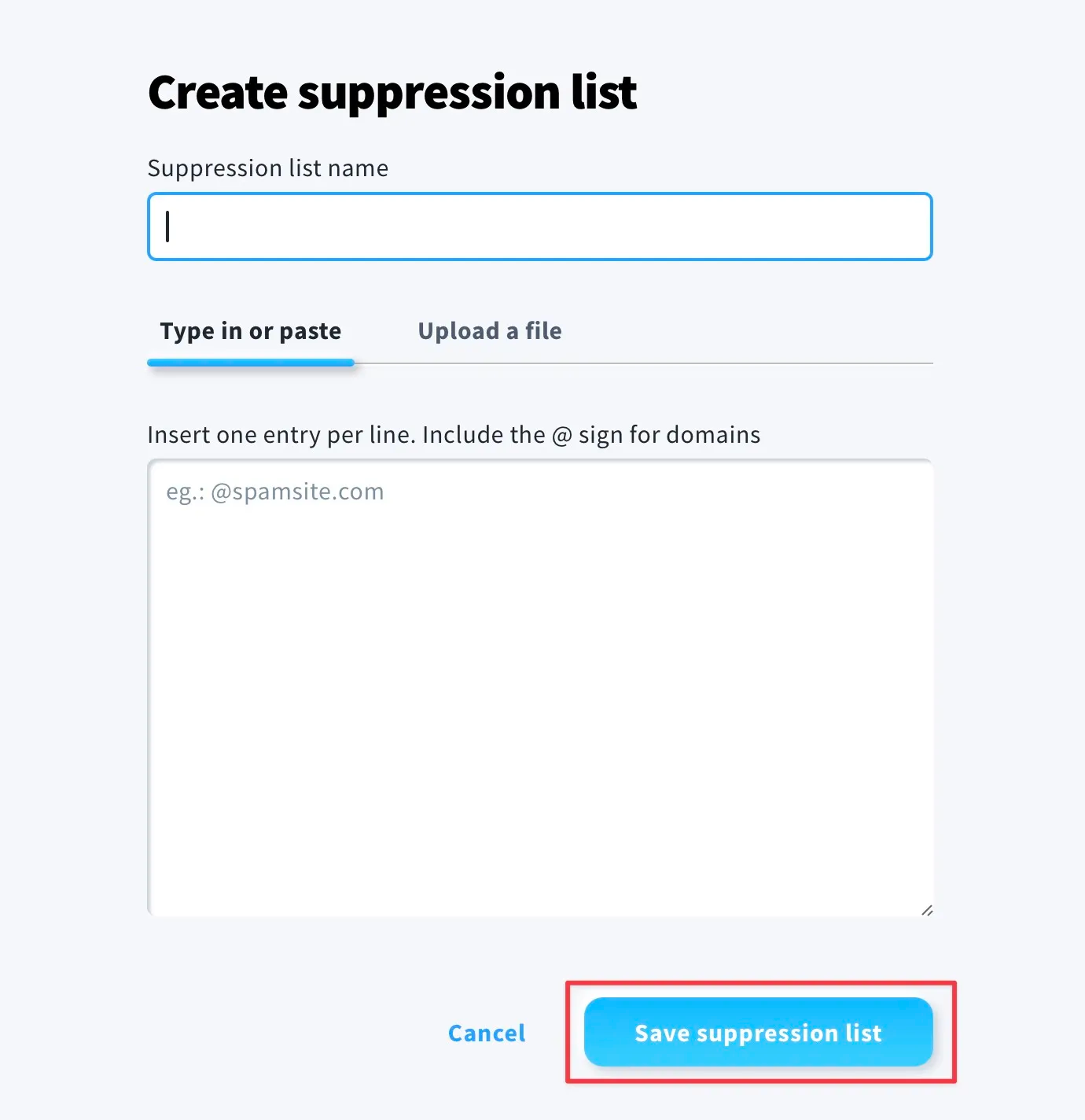 - Click on the Create suppression list button.