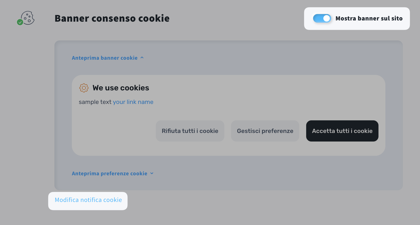 Per abilitare il banner dei cookie sul tuo sito web:
