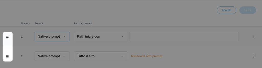 Quando crei un prompt, in realtà stai sempre creando un prompt personalizzato. Il prompt nativo viene creato automaticamente e non può essere modificato, poiché si tratta di una richiesta diretta del browser per l’invio delle notifiche.