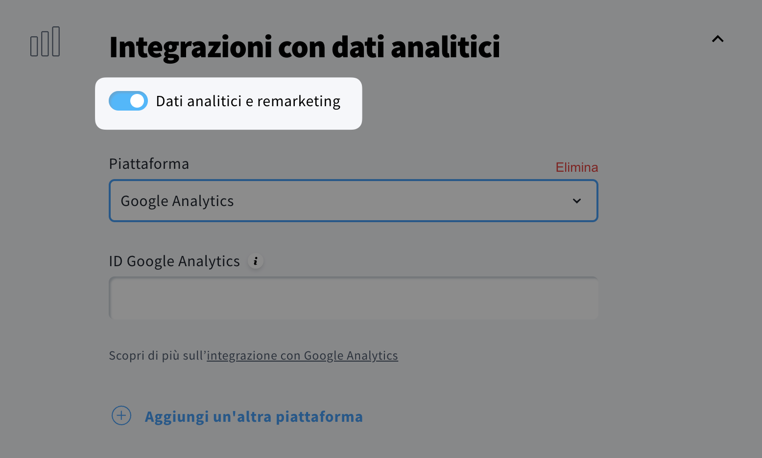 - Scorri verso il basso fino alla sezione Integrazioni con dati analitici e abilita Dati analitici e remarketing.
