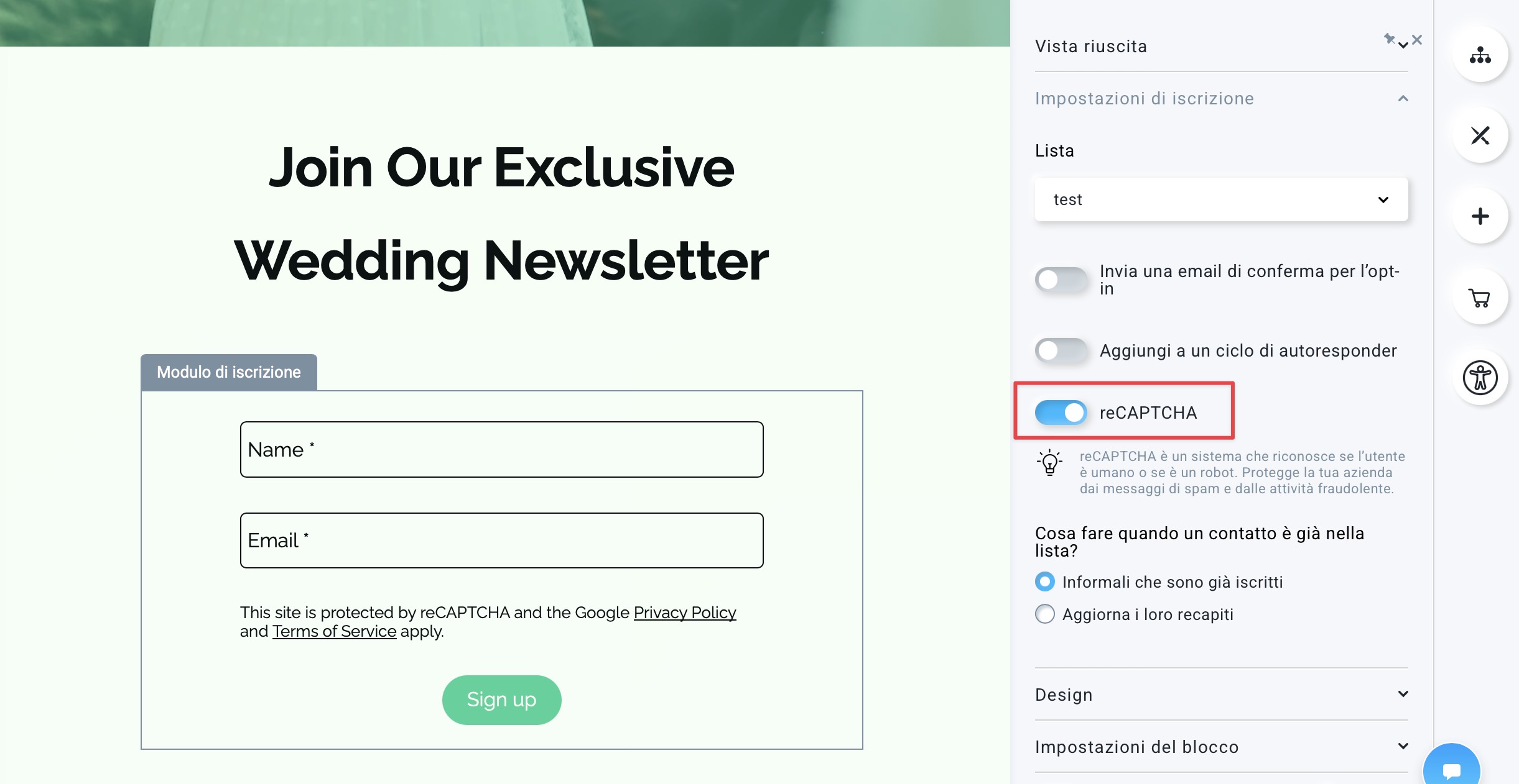 Come faccio ad aggiungere reCaptcha al mio modulo d’iscrizione