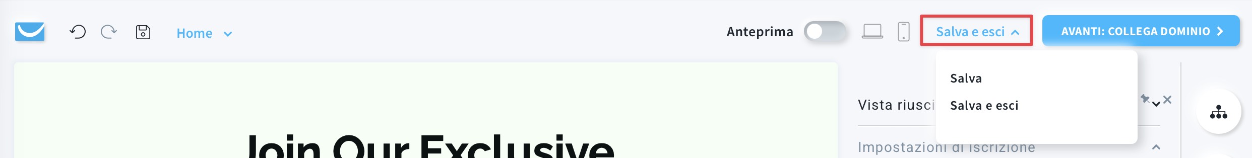 - Vada a Strumenti > Website builder.