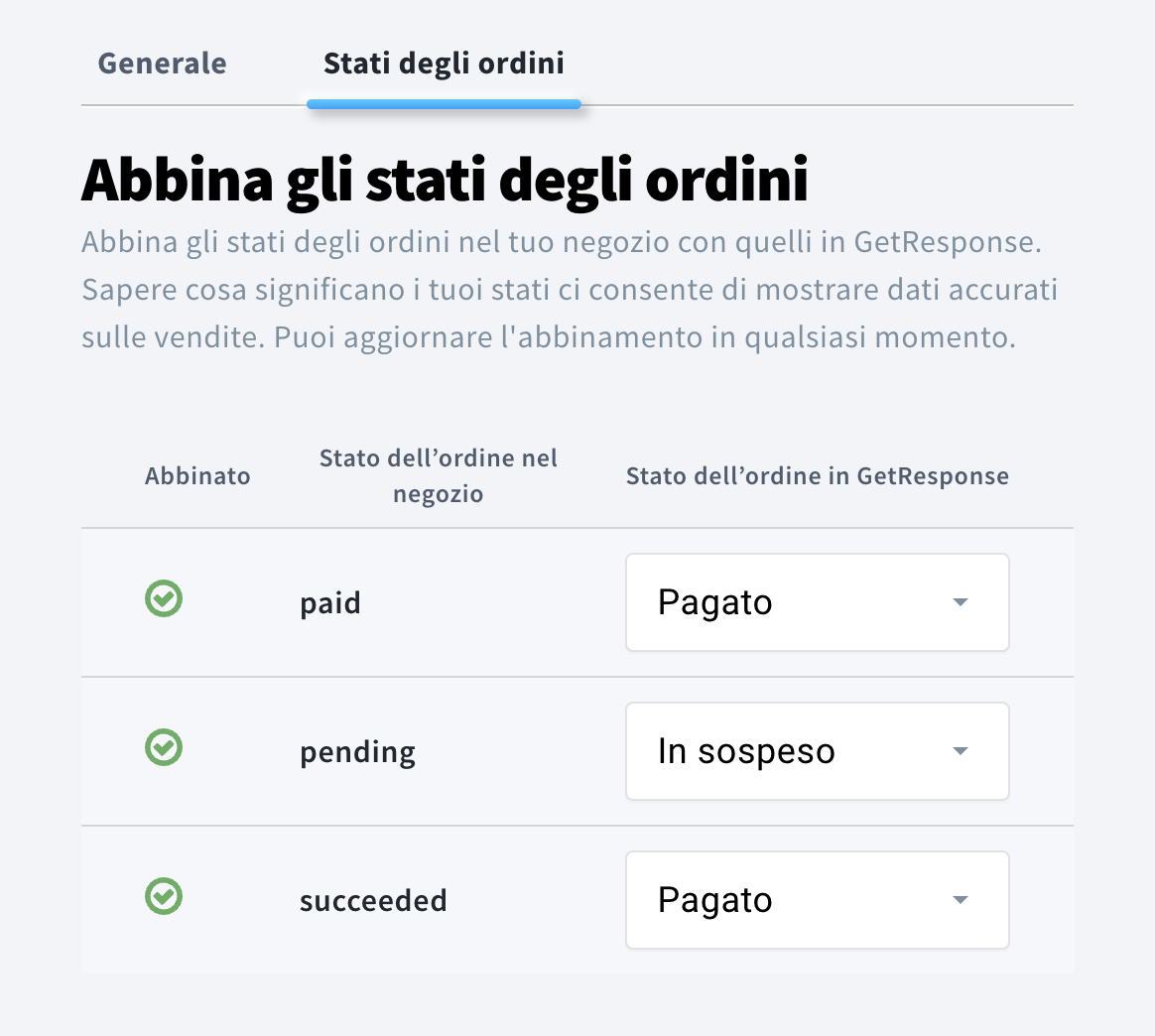 IMPORTANTE: Solo gli ordini con stato Pagato sono inclusi nei ricavi. Gli stati possono essere mappati di conseguenza nelle impostazioni del tuo store in Strumenti > Strumenti ecommerce > Impostazioni > Stati degli ordini.