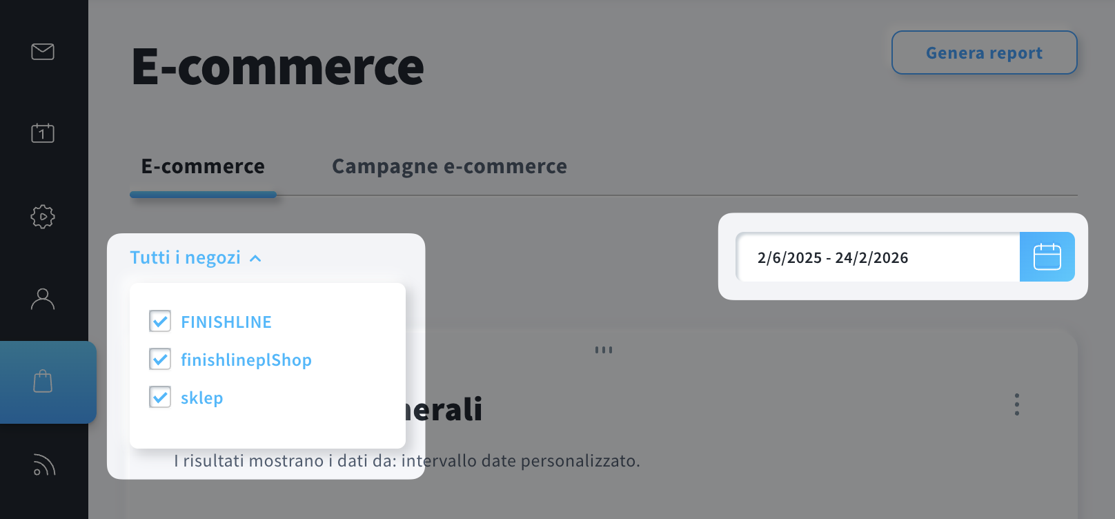 - Campagne e-commerce – statistiche basate sulle campagne ecommerce create da te