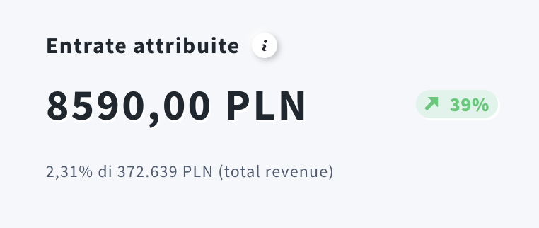 Entrate attribuite tasso di conversione mostra la percentuale di ricavi attribuiti dagli store selezionati e nel periodo scelto rispetto al ricavo totale.