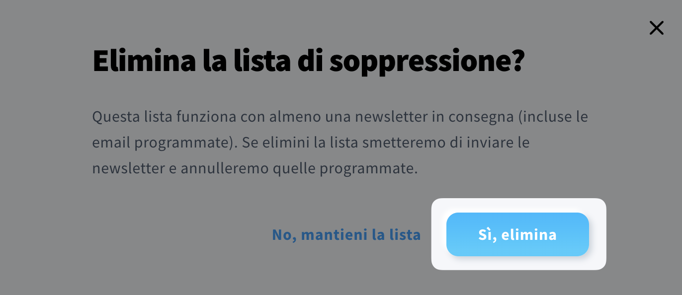 - Fai clic su Sì, elimina per confermare che desideri rimuovere la lista di soppressione.