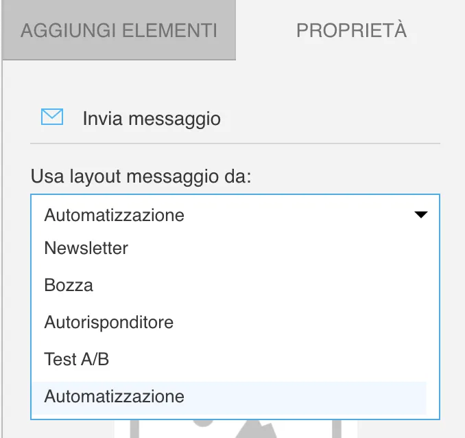 Puoi creare un nuovo messaggio in Menù>>Automation>>Messaggi di automation o riutilizzare un altro messaggio (Newsletter, Bozza, Autoresponder).