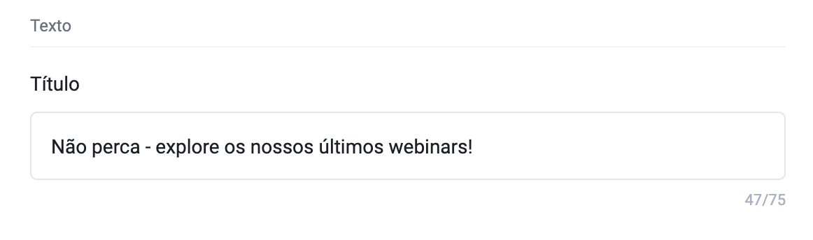 - insira o Título (até 75 caracteres) – exibido acima ou ao lado do botão de CTA