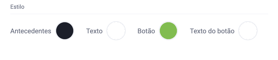 - Na seção Estilo, selecione as cores de Antecedentes, Texto, Botão, e Texto do botão.