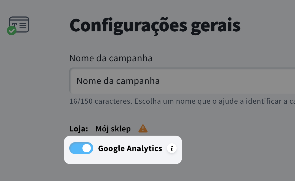 - (Opcional) Ative a opção Google Analytics para enviar UTMs conforme as configurações de integração do Google Analytics na sua conta GetResponse.