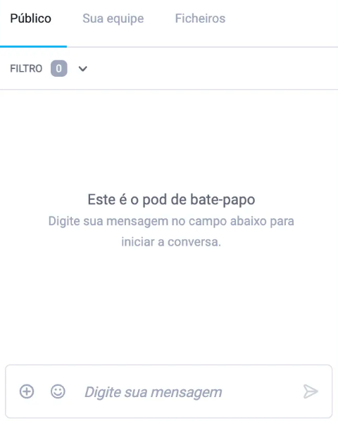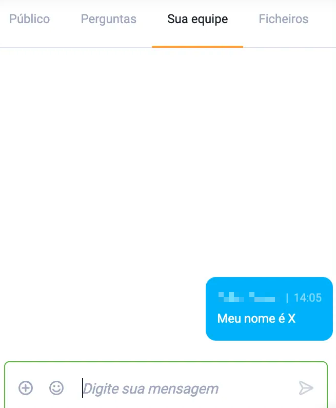 Na janela A sua equipa, os organizadores do evento, apresentadores, moderadores e/ou equipa de suporte podem manter um chat independente, oculto dos restantes participantes.